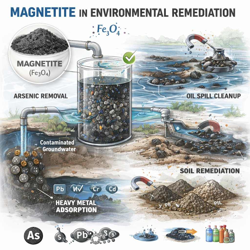 High purity Synthetic Magnetite also known as black iron oxide is a fine magnetic powder (2-4 um) widely used in industrial, environmental engineering, and manufacturing applications. It is widely used and preferred to natural magnetite due to the following reasons: